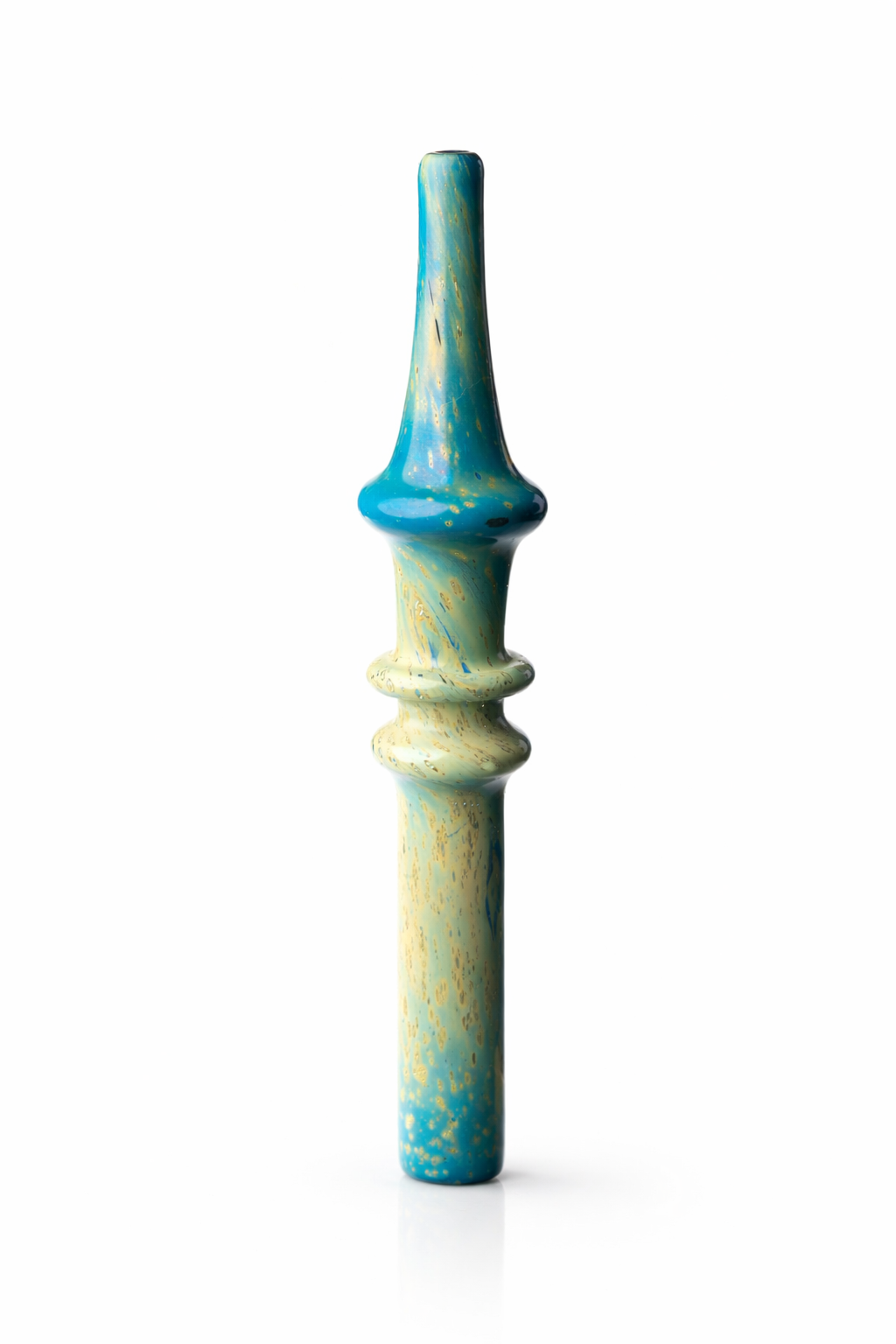 A Piteira de Vidro Space Full é uma peça que une design marcante e produção artesanal. Fabricada em vidro soprado à mão, apresenta um visual exclusivo com mistura de cores e efeitos que lembram texturas espaciais, tornando cada unidade única.